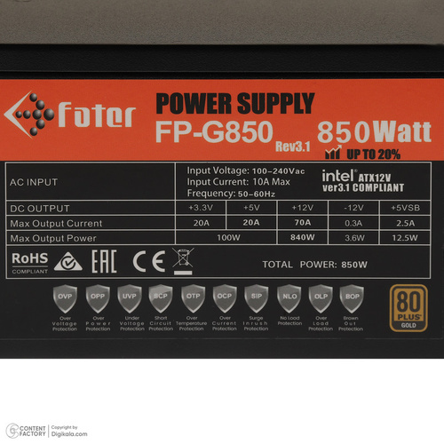 منبع تغذیه کامپیوتر 850 وات فاطر مدل FP-G850